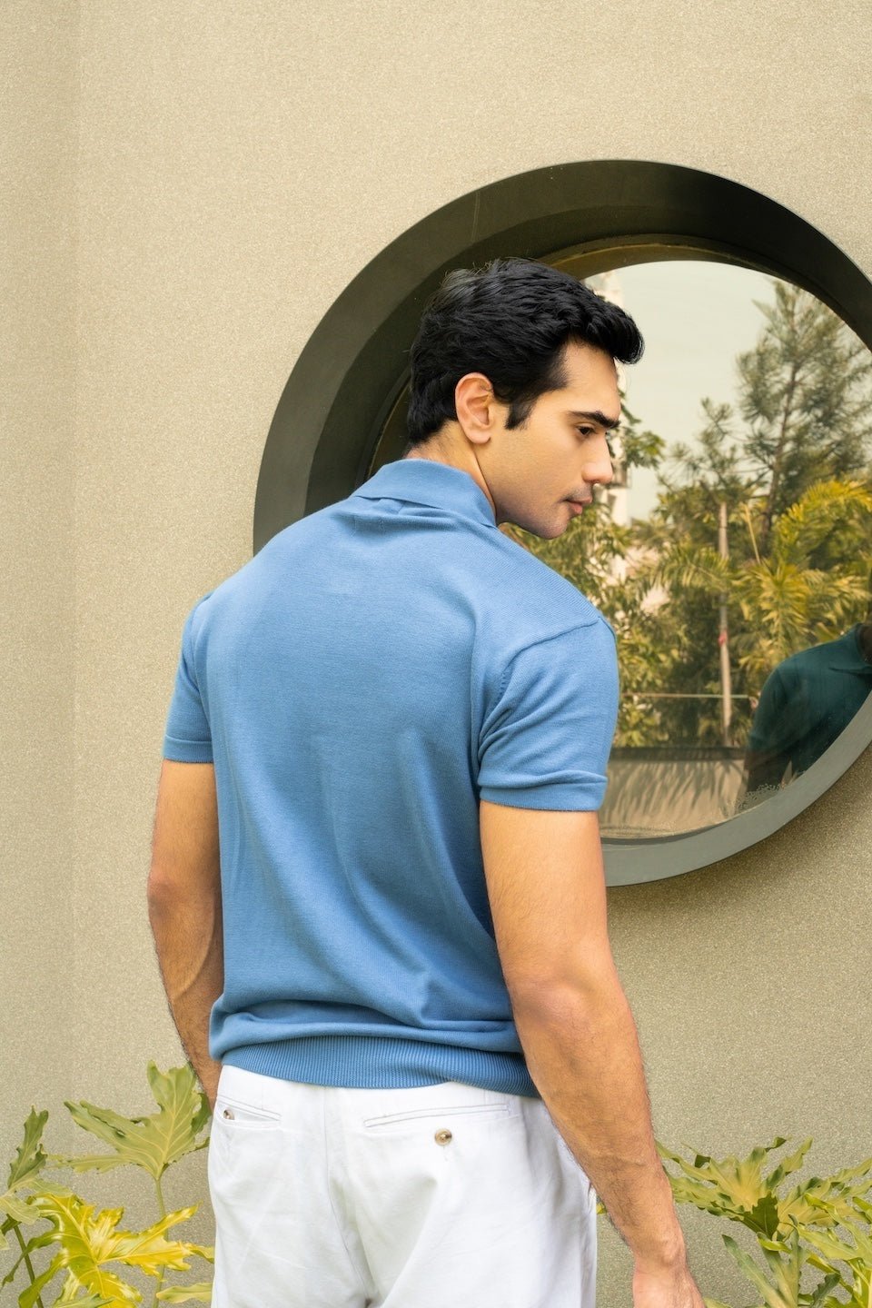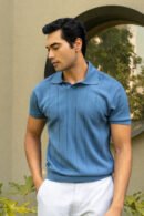 Introducing the Johnny Collar Knit Polo in Azure Blue, a timeless staple for those who appreciate a refined style. Crafted from 100{0fe987850b2366ddbf93158462bf650ab3167f078d7b080d701abd4c627c78f9} cotton and knitted with precision on a flat knit machine, this polo offers unmatched comfort and durability. The vertical rib knit design adds texture, while the Johnny collar adds a touch of sophistication. Versatile and effortlessly chic, it’s perfect for any occasion.