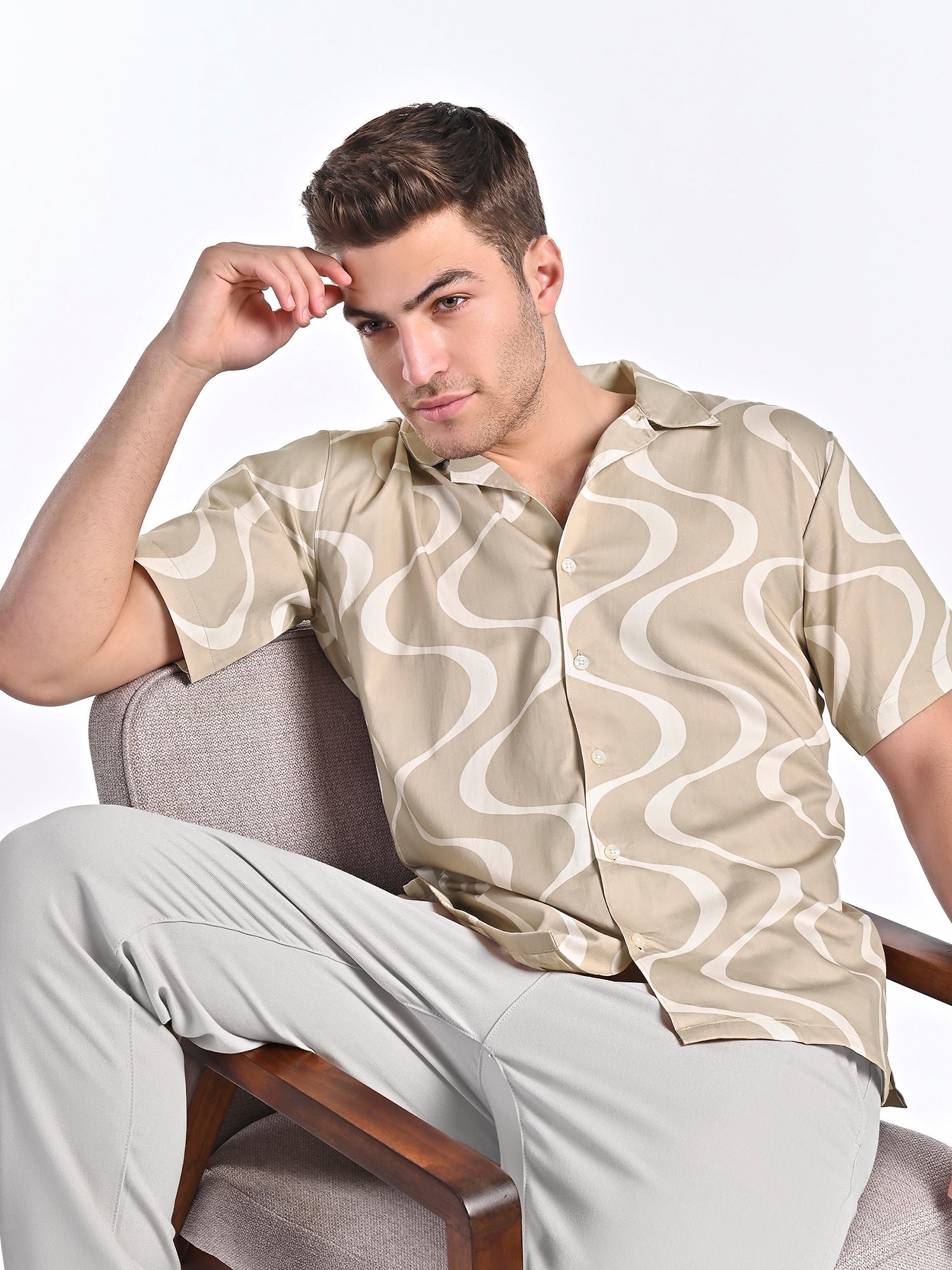 Crafted from 100{0fe987850b2366ddbf93158462bf650ab3167f078d7b080d701abd4c627c78f9} organic cotton, the Sand Dunes Camp Collar Shirt combines sustainable design with effortless style. Featuring a wavy sand dune-inspired pattern and a relaxed fit, it’s perfect for casual occasions. The camp collar and lightweight fabric ensure comfort and versatility.