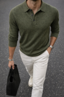 Experience the ultimate blend of comfort and timeless style. The Heirloom Mélange Knit Polo is crafted for the discerning individual, offering a quiet luxury that elevates any look. The sophisticated melange yarn, blending Olive Green and Soft Beige, provides unique depth and texture.